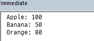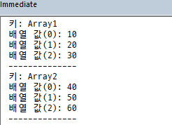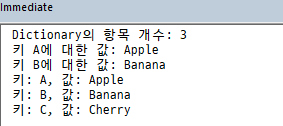Debug.Print "banana 키가 존재합니다: " & dict("banana")