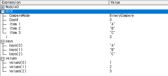 Debug.Print "딕셔너리의 항목 수: " & myDict.count
