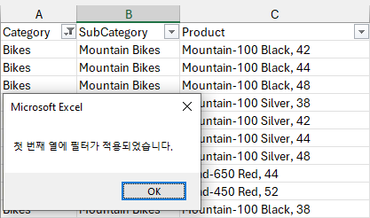 MsgBox "첫 번째 열에 필터가 적용되었습니다."