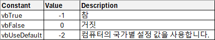 Debug.Print "기본 옵션: " & FormatCurrencyWithCustomOptions(currencyValue)