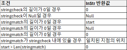 compare : 선택 사항입니다. 하위 문자열을 평가할 때 사용할 비교의 종류를 나타내는 숫자 값입니다. 생략하면 이진 비교가 수행됩니다.