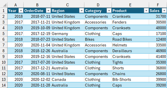 자동 필터를 사용하여 테이블을 필터링하며 읽기 전용입니다.