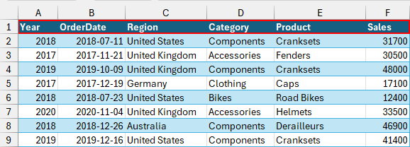 다음은 현재 통합 문서의 워크시트 1에 있는 기본 ListObject 개체의 HeaderRowRange 속성에 지정한 범위를 활성화하는 예제입니다.