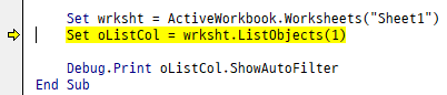 새 ListObject 개체의 ShowAutoFilter 속성은 기본적으로 True로 설정됩니다.