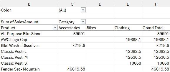 ' SalesAmount 필드를 데이터 필드로 추가하고 데이터 합계로 설정
