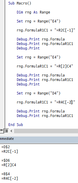 RelativeTo : RowAbsolute 및 ColumnAbsolute가 False이고 ReferenceStyle이 xlR1C1인 경우 상대 참조의 시작점을 포함해야 합니다. 이 인수는 시작점을 정의하는 Range 객체입니다.