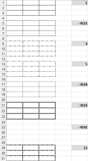 | xlDashDotDot | 5 | 5,11 | Dash followed by two dots. |