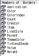 Borders개체의 ThemeColor,TintAndShade는 Interior의 Themecolor,TintAndShade와 같습니다.