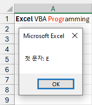 ' A1 셀의 첫 문자의 텍스트 가져오기