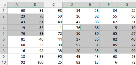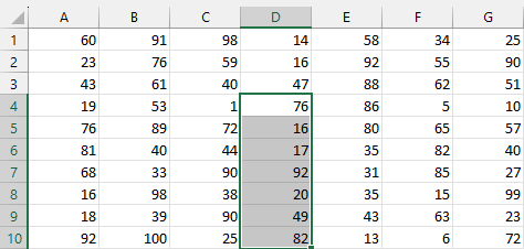 C는 세 번째 열이므로 D4:D10이 선택됩니다.