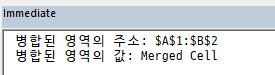 Debug.Print "병합된 영역의 주소: " & mergeArea.Address