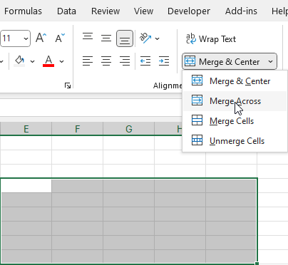 지정된 범위의 각 행에 있는 셀을 별도의 병합된 셀로 병합하려면 True입니다 . 기본값은 False입니다.