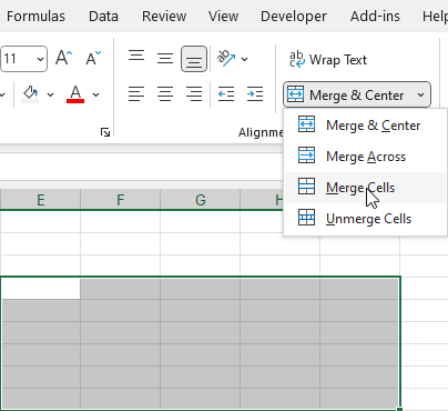 Merge메서드는 단어 그대로 셀 병합(倂合)을 합니다.