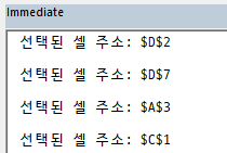 Debug.Print "선택된 셀 주소: " & ActiveCell.Address