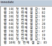 Debug.Print "행 " & row.row & "의 첫 번째 셀 값: " & firstCell.Value