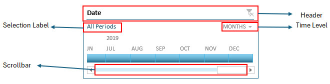 슬라이서 뷰의 타임라인 특정 멤버를 나타냅니다.