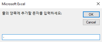 inputChar = InputBox("줄의 양쪽에 추가할 문자를 입력하세요:")