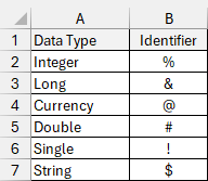 하나의 문에 여러 변수를 선언하려면 각 변수에 대한 데이터 유형을 포함하세요. 데이터 유형 없이 선언된 변수는 자동으로 Variant로 선언됩니다.