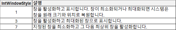 intWindowStyle : 실행 중인 프로그램의 창 스타일을 설정합니다.