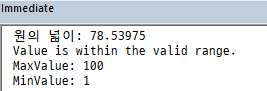Debug.Print "원의 넓이: " & area