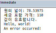Debug.Print "세금 포함 가격: " & price
