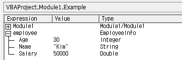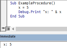 Debug.Print "Name in Procedure1: " & strName ' 변수 strName의 값을 메시지 박스로 출력합니다.