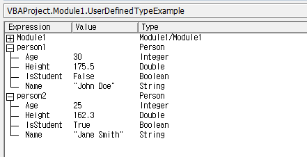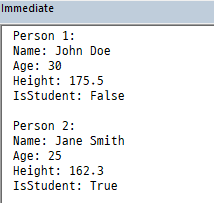 "IsStudent: " & person1.IsStudent & vbCrLf & vbCrLf & _