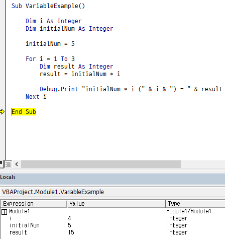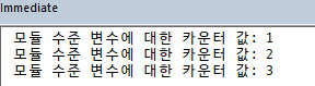 Debug.Print "모듈 수준 변수에 대한 카운터 값: " & moduleCounter