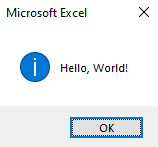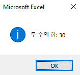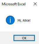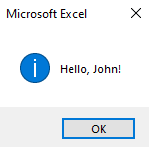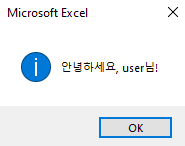 MsgBox "안녕하세요, " & name & "님!", vbInformation