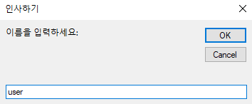 name = InputBox("이름을 입력하세요:", "인사하기")